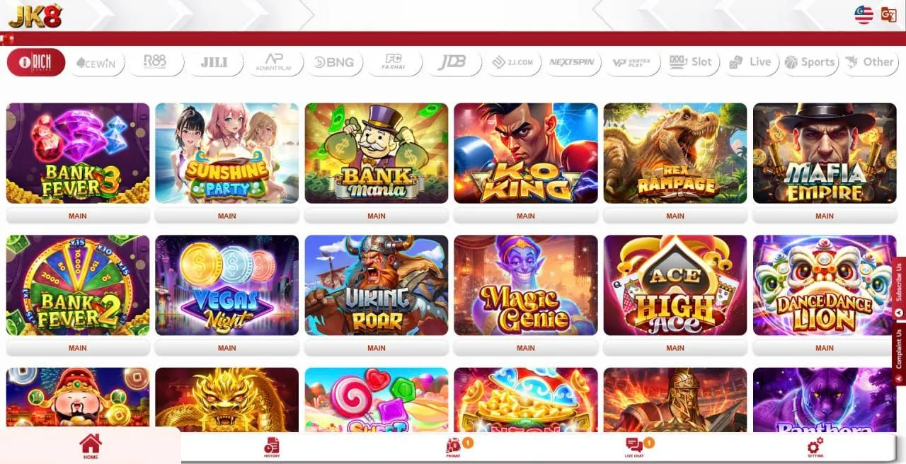 Sebagai syarikat yang berpengalaman, kami menawarkan pelbagai permainan casino dan taruhan sukan. Pemain boleh mengakses slot online, permainan memancing, casino langsung, dan sportsbook komprehensif. Kami memfokuskan kepada kemudahan mobile untuk memenuhi keperluan pengguna Malaysia.